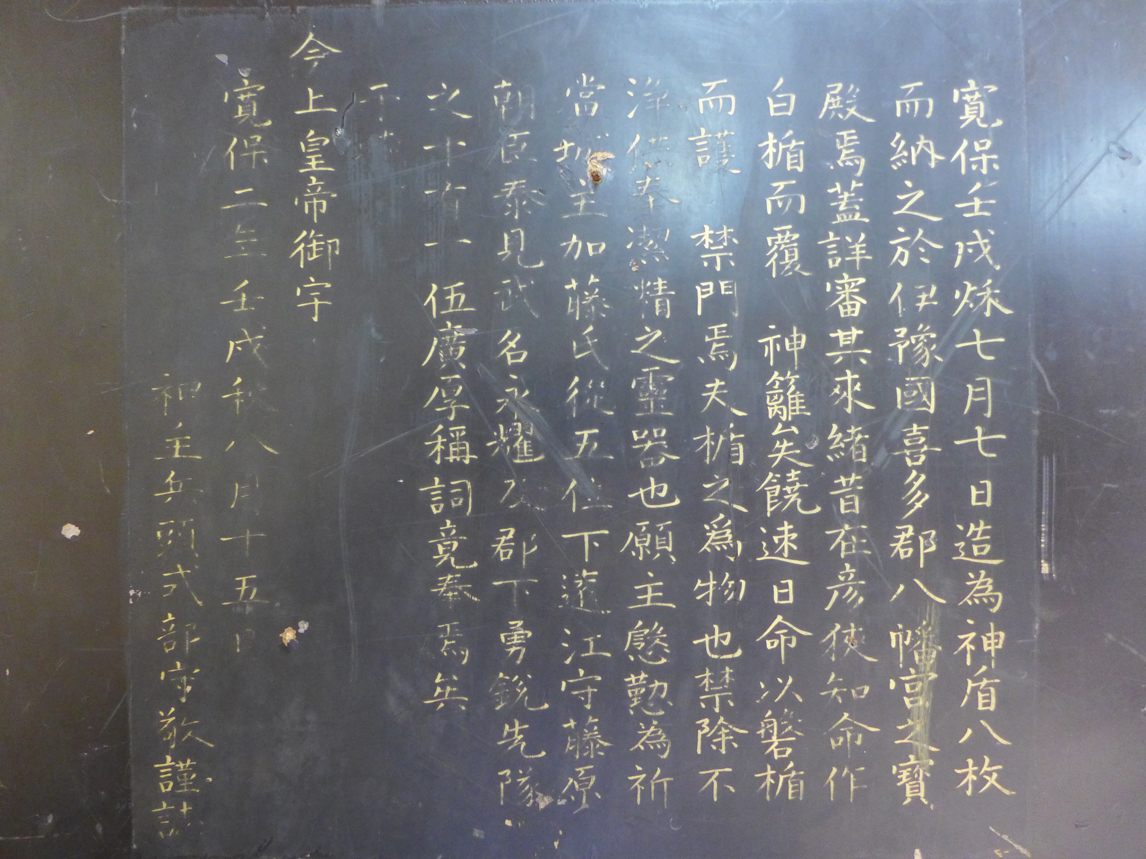 「お成り」がいつ始まったかははっきりしたことはわかってはいませんが、古文書によれば300年前にはすでに行われていたようです。寛保2年(1742)にはお成りで使用する神盾が作られ、宝歴五年(1755)に大洲藩主が武運長久を願って20竿を奉納したことが記されていることから、約260年前に現在の形に整備されたと思われます。