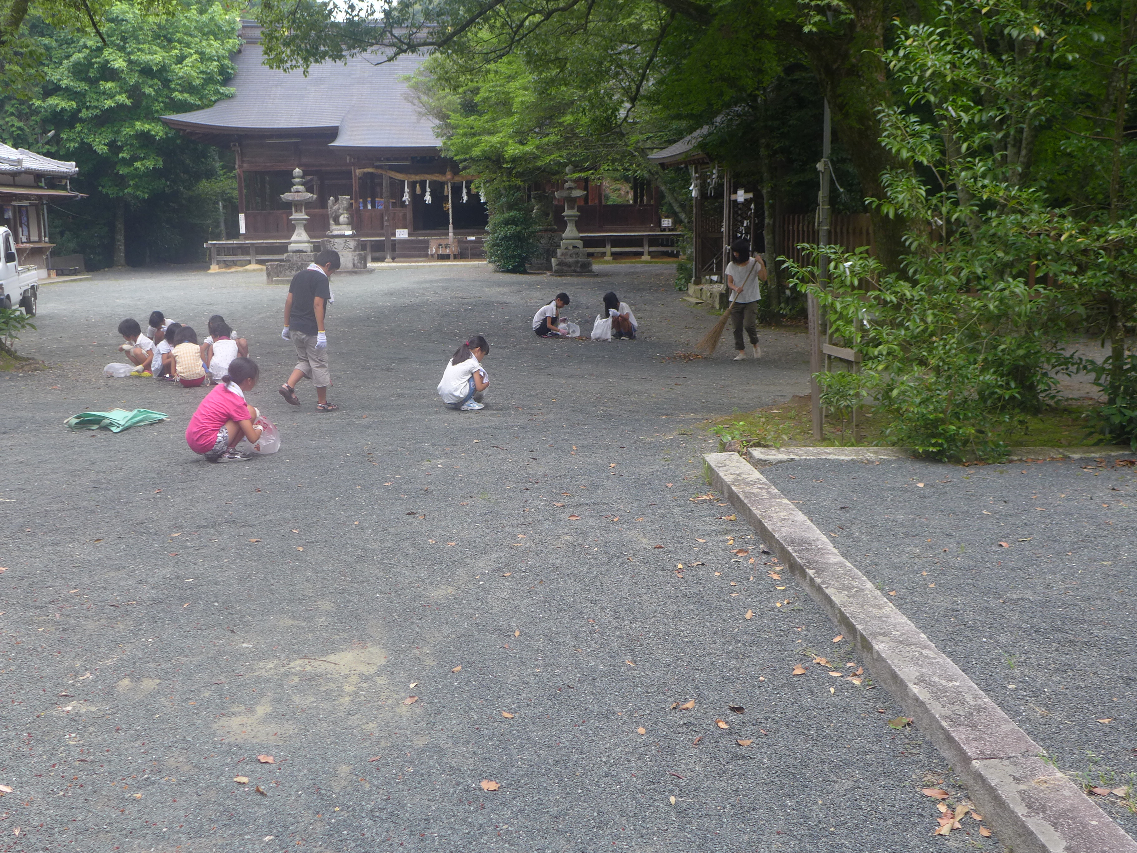 毎年夏休みに入ると、ラジオ体操の後?に来てくれます。軍手をはめて一生懸命落ち葉を拾ってくれました。