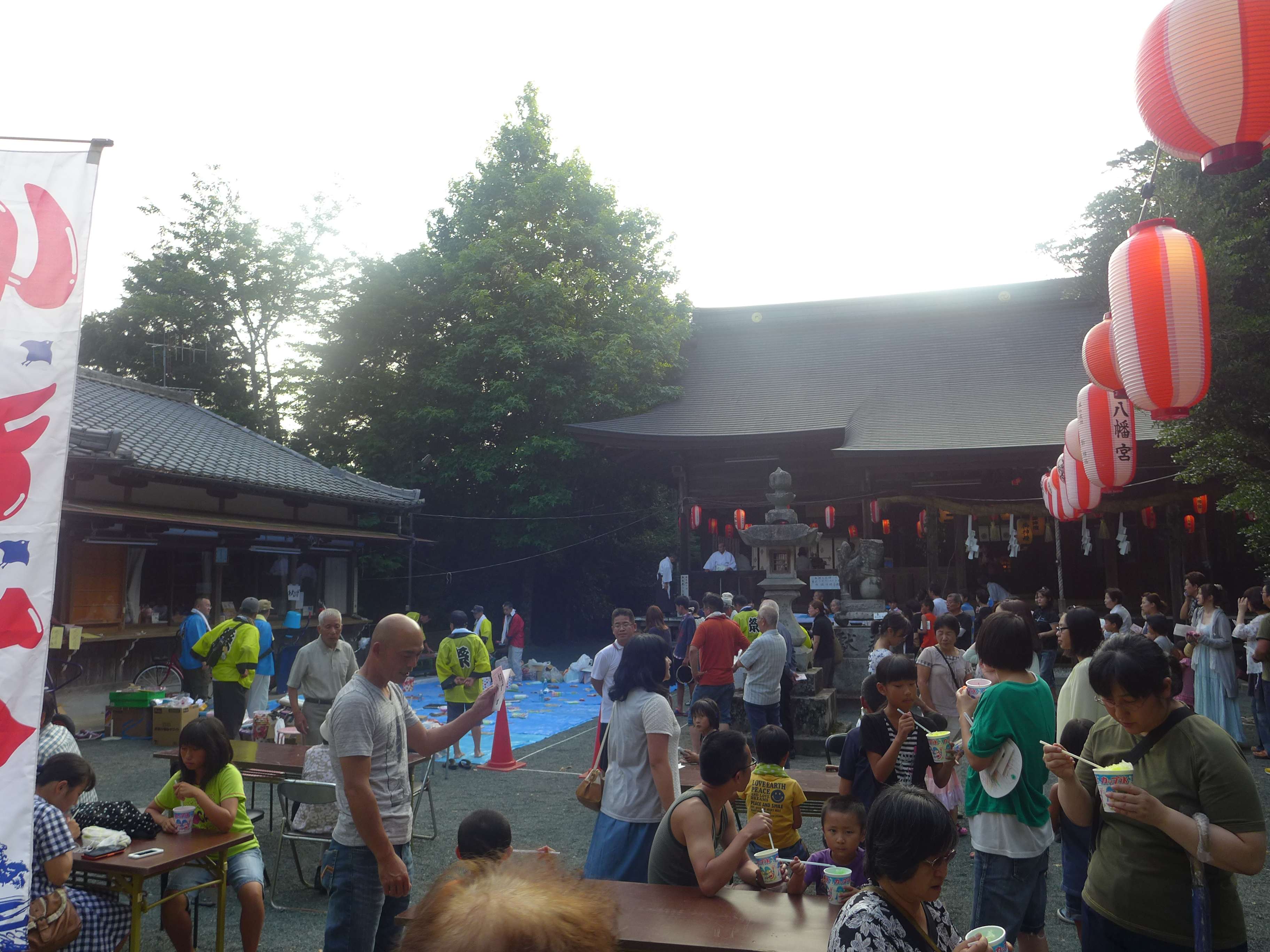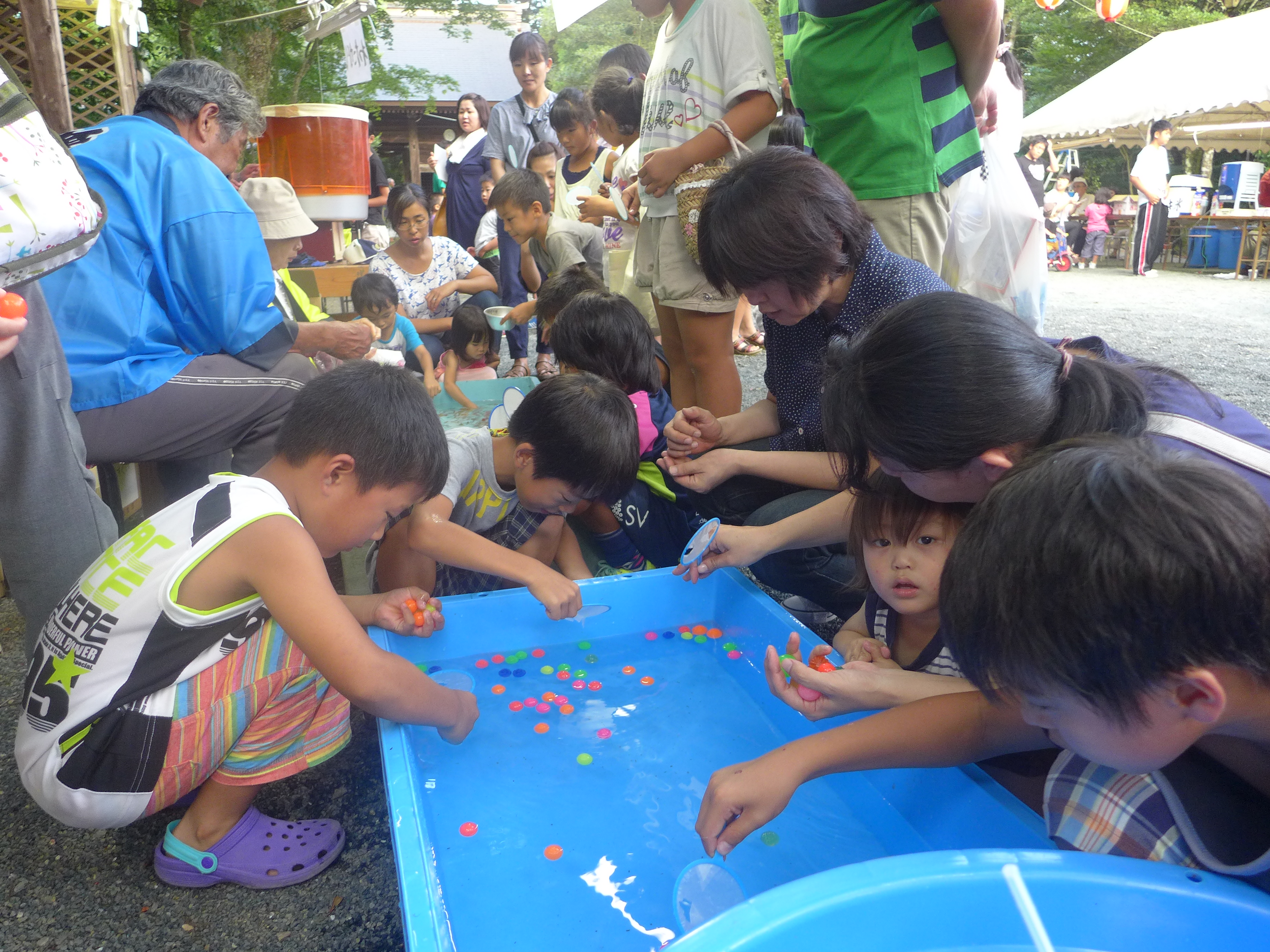 境内では、金魚すくいにスーパーボールすくい、わた菓子にかき氷、そしてジャンボシャボン玉作りと、昔ながらの屋台が並びました(すべて無料!)。これらの催し物はすべて当社の総代さん達が準備し、行っていただいています。今年も本当にお疲れ様でしたm(__)m。