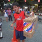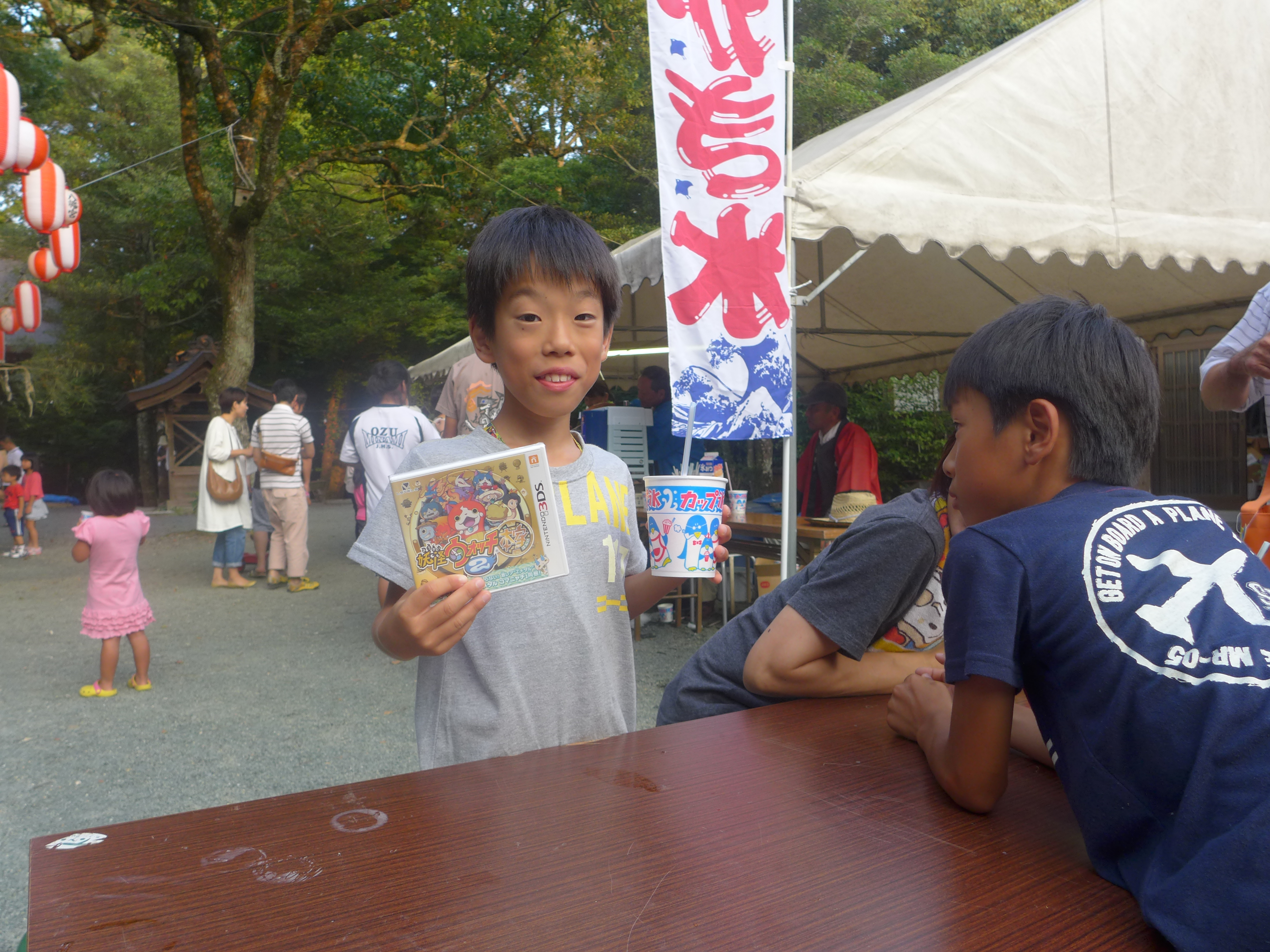 神事の後の恒例の輪投げでは、定番の「草刈機」「一輪車」に加え、「自転車」や「扇風機」など今年も盛りだくさんの景品でした。なぜか、草刈機と一輪車は今年は一台も出ず・・・。特別難しくはしていないのですが・・・(^_^;)