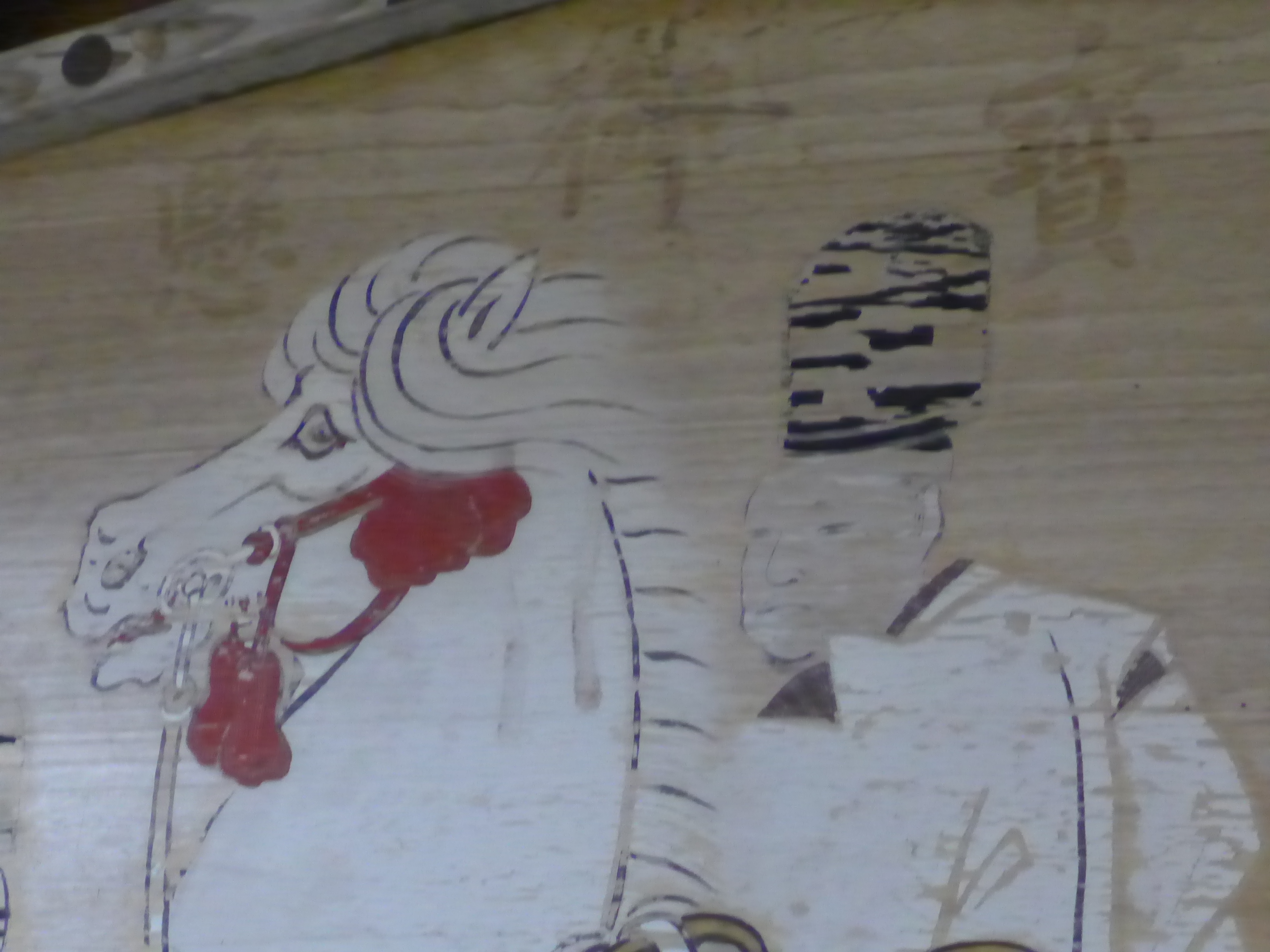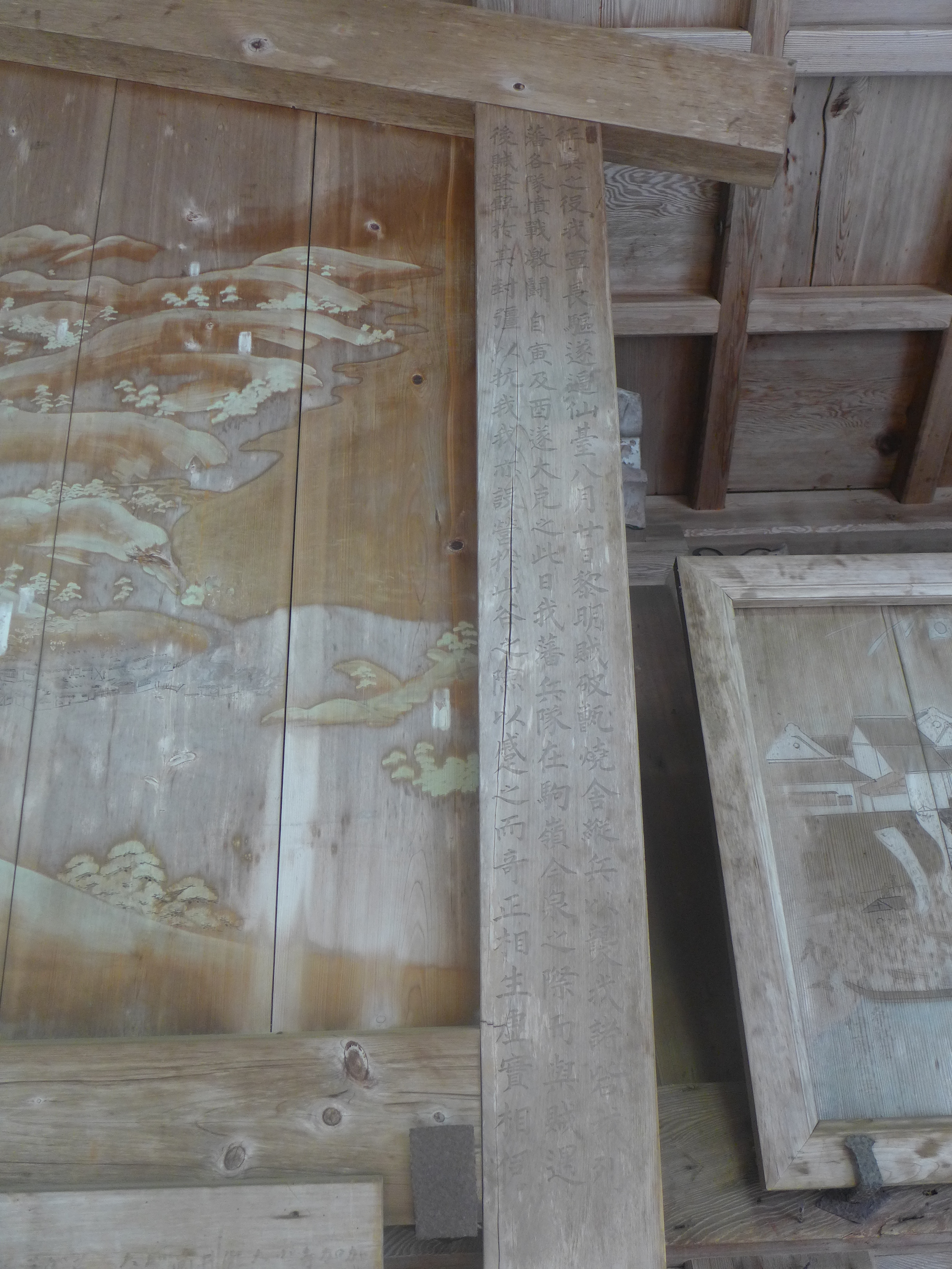 私が子どもの頃は、絵も文字ももっと鮮明に見えていたのですが、拝殿は吹きさらしということもあり、残念ながらだんだん劣化が進んでいます。将来的には拝殿に壁をつけていかねばと考えています。
