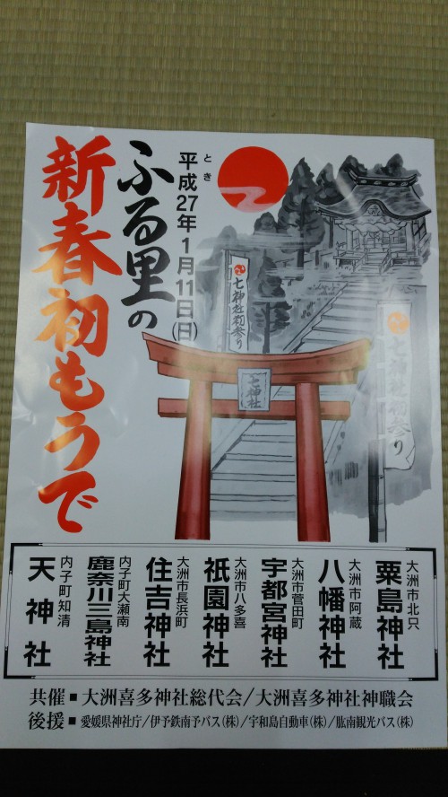 これは、大洲喜多総代会ならびに大洲喜多神社神職会が主催し、毎年大洲喜多地区の中から七社を選び巡るもので、地域ごとに参拝団が組織され、毎年約40団体、1000名が参拝されます。