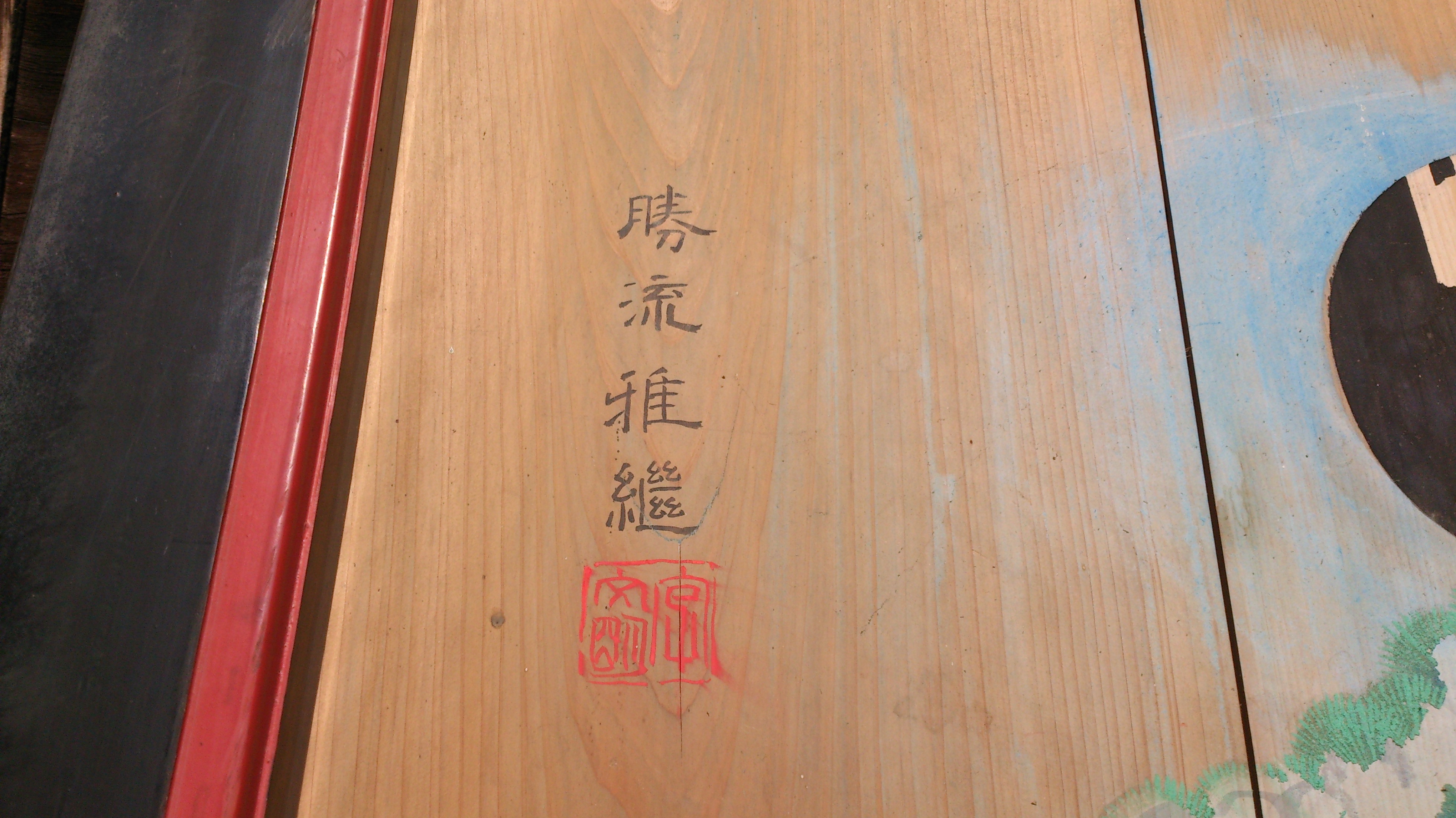 話が長くなりましたが、この絵馬を描いたのは、新谷の玉井勝流稚継(閑林斎、洋々斎)です。稚継は、若宮養徳の嗣子若宮晴徳の門人として活躍しました。晩年は大洲領であった砥部で砥部焼の絵付けをしていたとか。