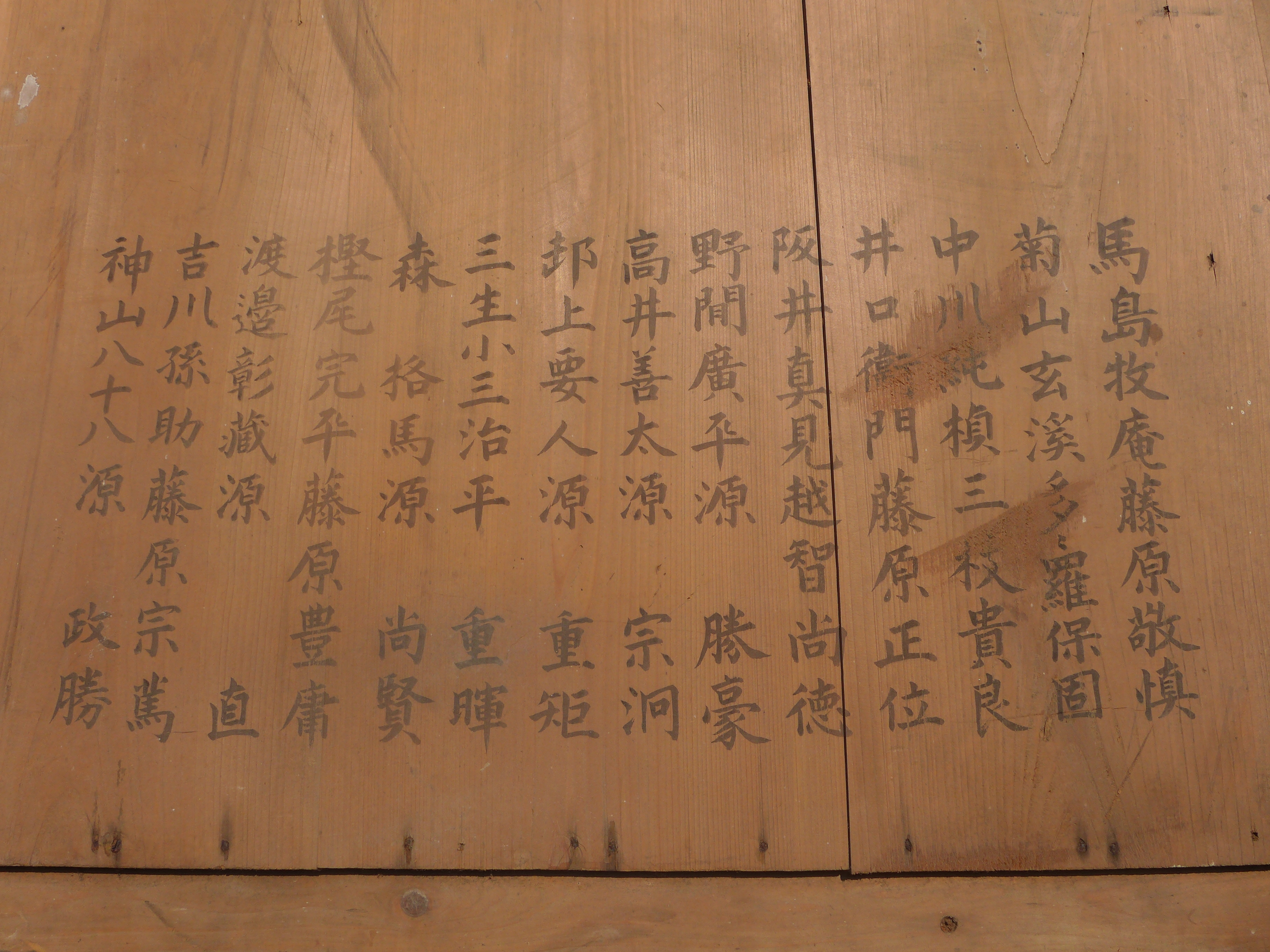 そして絵馬の裏には、当時の奉納者の方々の名が記されています。ご覧になった方で、御子孫や、この方々を知っておられる方がいらっしゃいましたら神社までご一報いただければ幸いです。