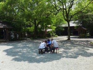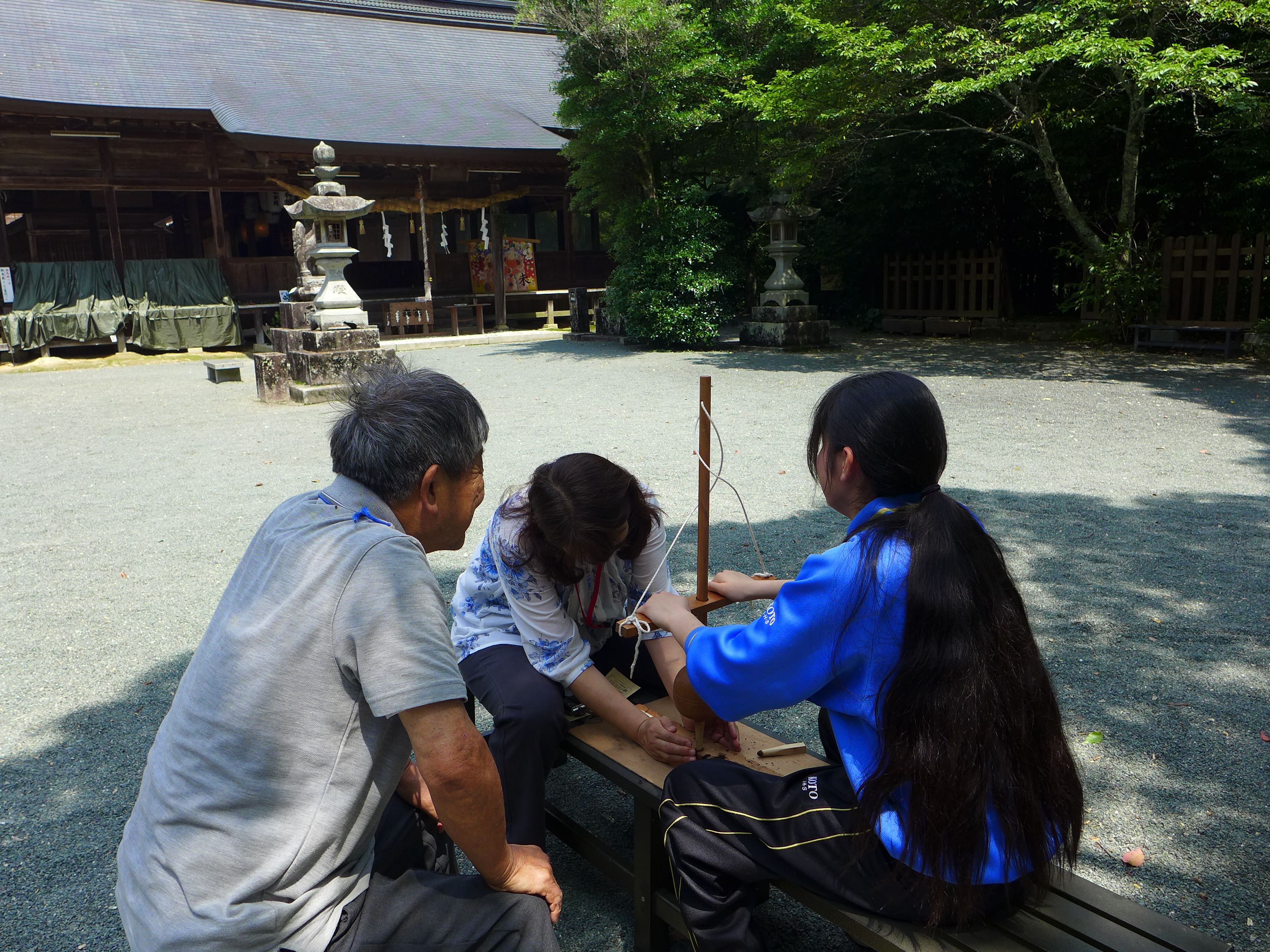 2日目からは、境内清掃やどんと焼きで行う火おこし体験、八幡神社の歴史についての授業を行いました。ちょっと詰め込みすぎたかな・・・(^^;)
