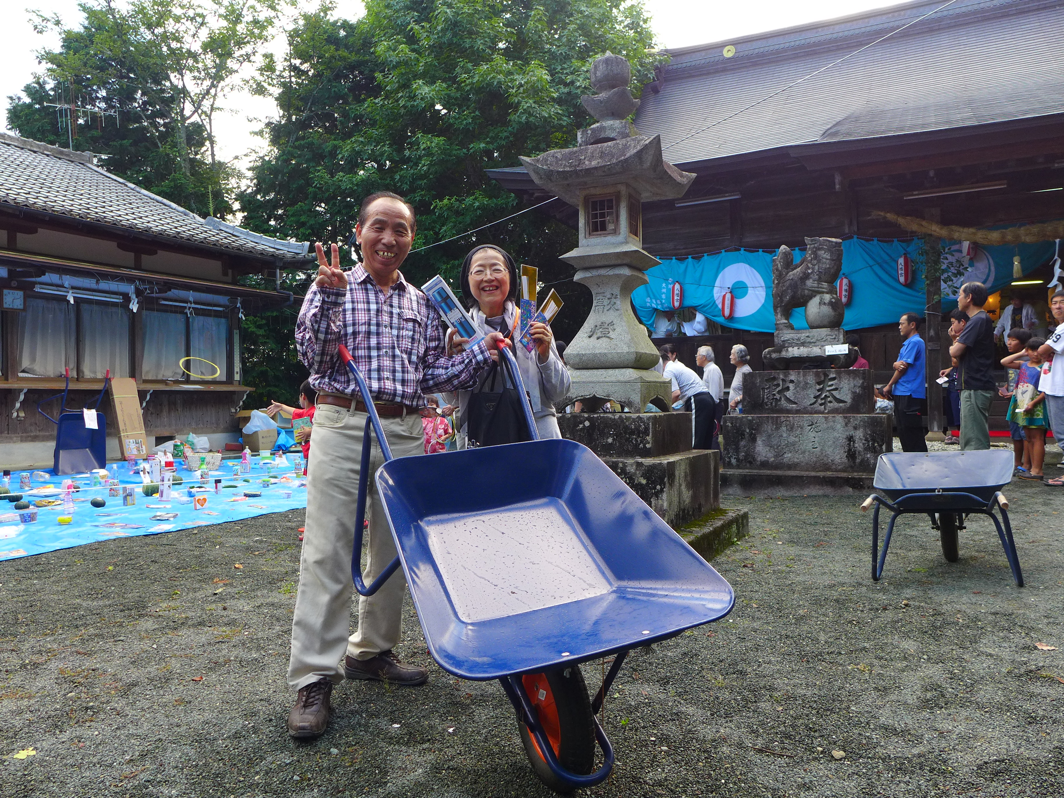 <輪投げの戦利品を見せてくださった皆さん>