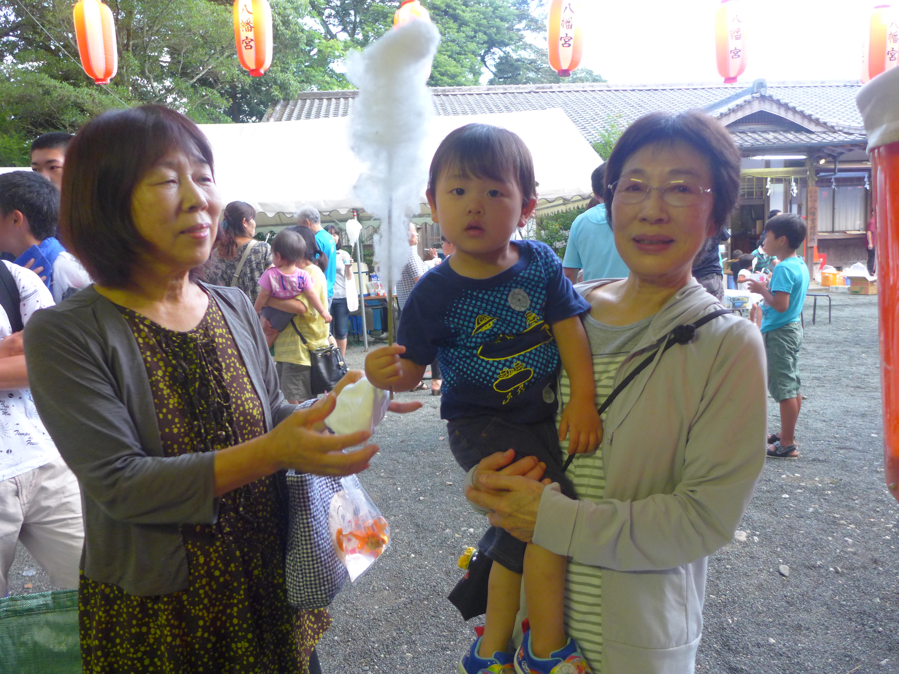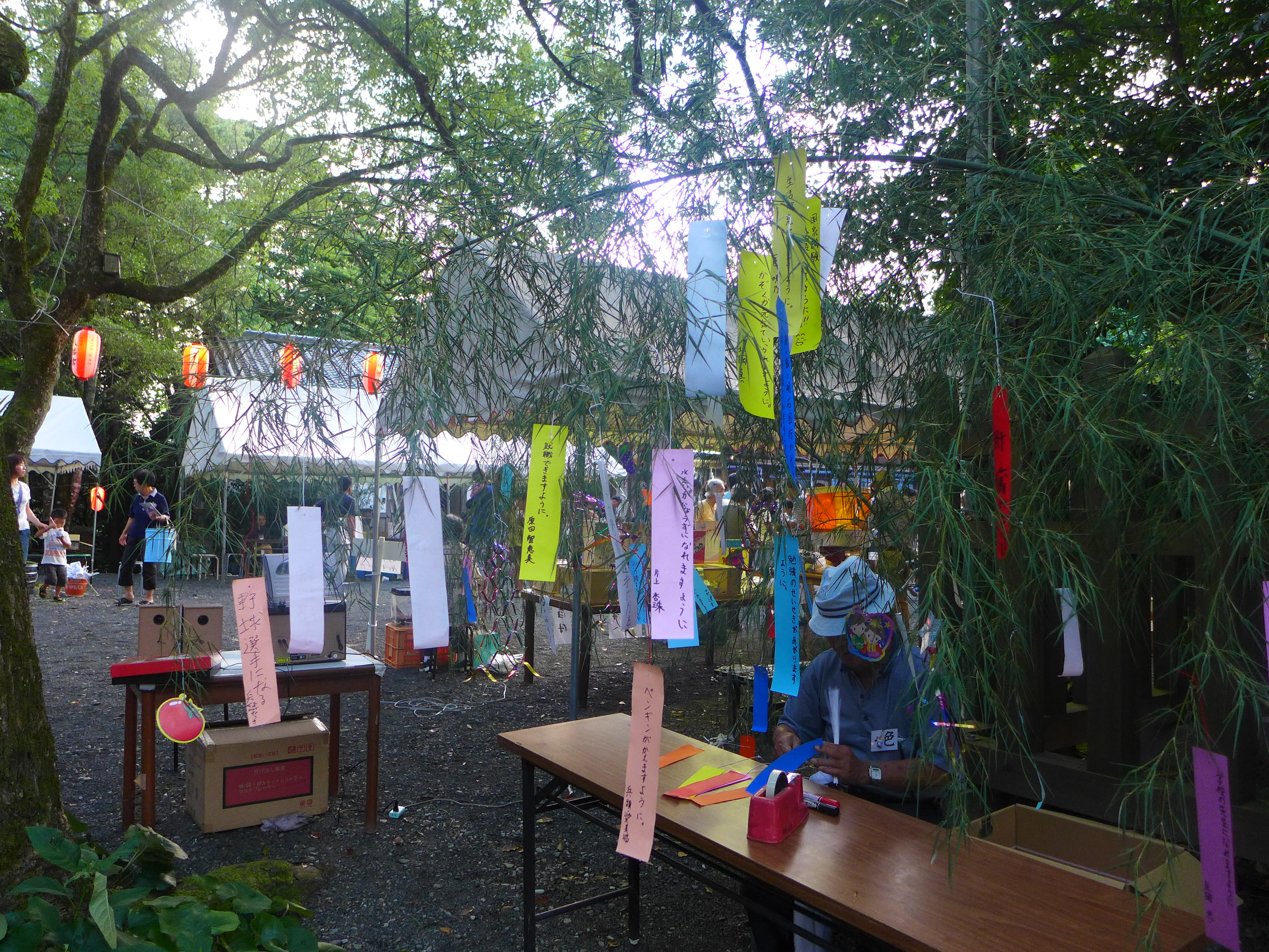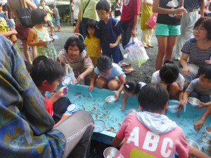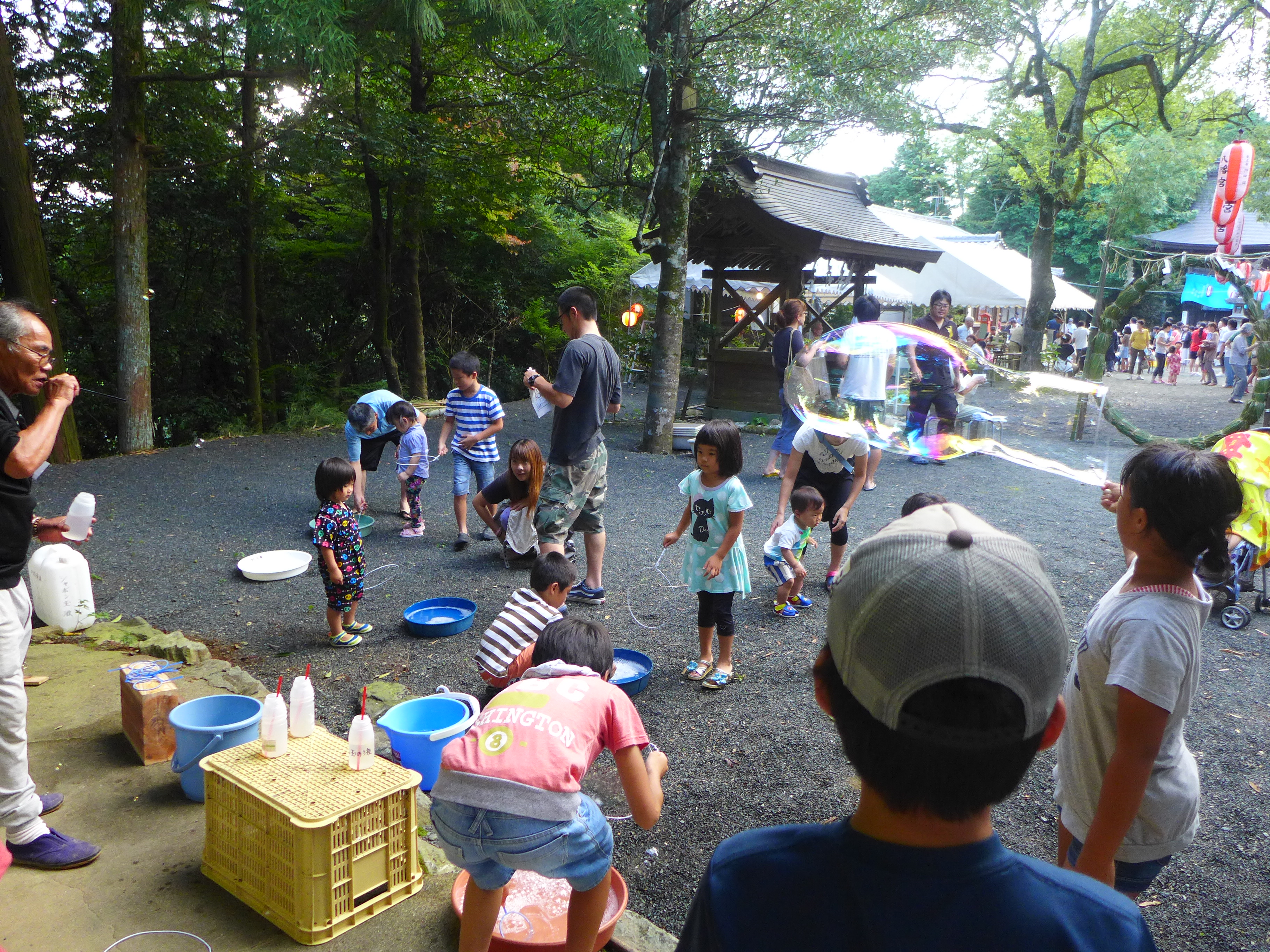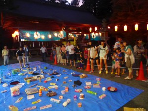 また、境内では、恒例となりました輪投げに加え、総代・地区総代さん方にご奉仕いただいた、かき氷、金魚すくい、スーパーボールすくい、綿菓子、シャボン玉つくり、七夕コーナー、などの出店が並び、大いに賑わっていました。