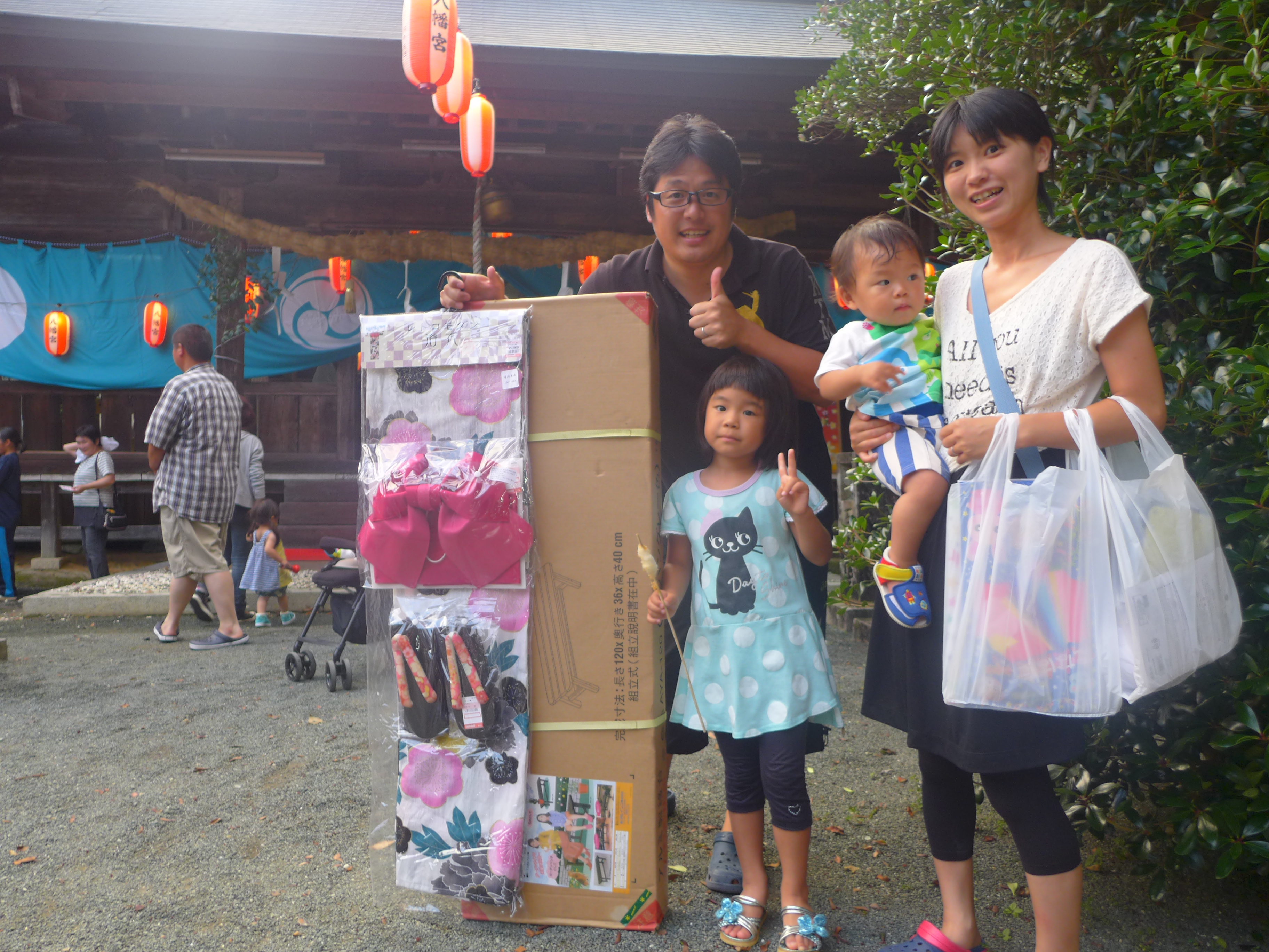 アルミベンチと浴衣セットが当たってニコニコ