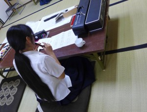 生徒さんは、音楽が好きでクラリネットの腕前もかなり、ということで、3日間を通して、笙(しょう)や篳篥(ひちりき)、龍笛などの雅楽を体験してもらいました。いろいろな楽器を試した結果、彼女が選択したのは、篳篥。クラリネットと同じリード楽器です。