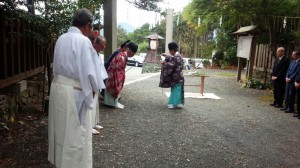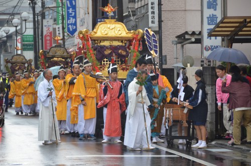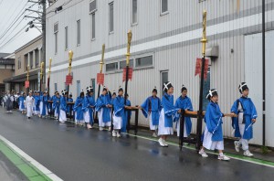 しかし、西大洲から中町を抜け、常磐町に入る頃には雨も上がり、1回目の御旅所祭では、地面が濡れているためいつもと異なり立礼(りゅうれい:立ったままで行う作法)だったものの、無事、御旅所祭を執り行うことができました。