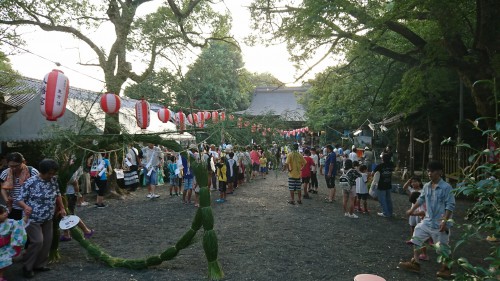 夏越祭は、この半年のうちに知らず知らずのうちに身についた罪穢れを祓い、今年の後半も災いなく、無病息災で過ごせるよう祈念する神事です。5時半からの祭典では、参列者の皆様と左回り、右回り、左回りの順で茅輪をくぐり、拝殿にて八幡神社の大神様、祓戸の大神様に、大洲の里の皆様の無病息災を祈念いたしました。