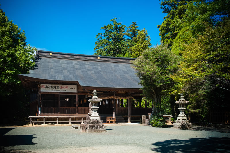 拝殿は、拝礼を行うための社殿です。本殿は大洲藩主が、中殿は御家来衆が、そしてこの拝殿は大洲領民の寄進によって建てられたと伝えられています。