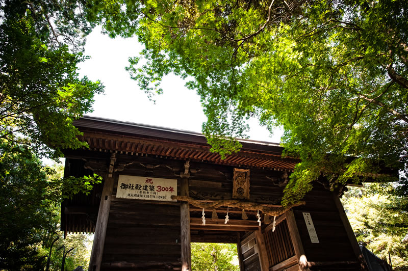 元禄11年(1698年)に建てられました。門の両側には境内をお護りする随神様が祀られています。正面の扁額は、持明院基時の揮毫によるものと伝えられています。