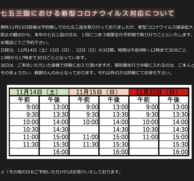 2020年10月21日 七五三詣のご案内(令和2年度)