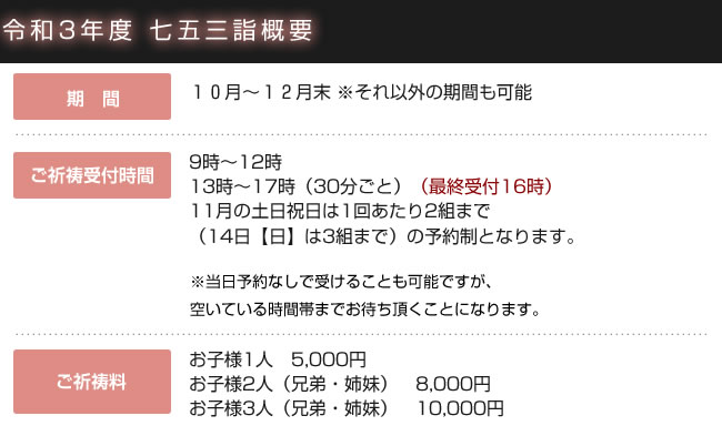 2021年10月29日 七五三詣のご案内(令和3年度)