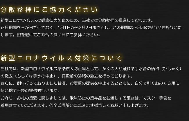 当社では、新年を迎えるにあたり、新型コロナウイルスの鎮静化祈願祭を執り行うと共に、地域の平穏を祈念いたします。