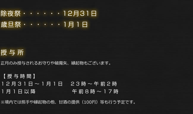 初詣は、1年間私達をお護りくださった大神様に感謝申し上げるとともに、新しい年を寿ぎ1年の無事と平安を祈願するものです。 古くから大洲領総鎮守として崇敬を集めた八幡神社で新しい1年を迎え、より一層の隆昌をご祈願ください。